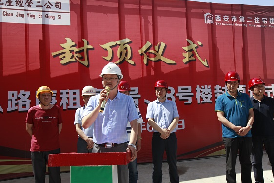 在封頂儀式上,經(jīng)營(yíng)二公司經(jīng)理董文軍對(duì)參與該項(xiàng)目的施工方、監(jiān)理方和勞務(wù)方的工作表示了衷心的感謝;林華監(jiān)理代表對(duì)5#、8#樓的施工質(zhì)量、進(jìn)度、安全等方面予以充分的肯定,并對(duì)5#、8#樓春節(jié)前搶抓進(jìn)度,創(chuàng)造月進(jìn)度5層半的成績(jī)表示贊嘆;市局領(lǐng)導(dǎo)強(qiáng)調(diào)丈八路廉租房項(xiàng)目在后期建設(shè)中,要繼續(xù)發(fā)揮5#、8#樓作風(fēng)過(guò)硬、技術(shù)過(guò)硬的優(yōu)勢(shì),在保證安全和質(zhì)量的前提下?lián)屵M(jìn)度,保質(zhì)量。房管處劉振龍?zhí)庨L(zhǎng)特別提出兩個(gè)具體要求:一是安全生產(chǎn)的重要性,要時(shí)刻保持警惕,一刻不得松懈;二是要注意治污減霾和施工噪音擾民的問(wèn)題,要注意防塵覆蓋和定時(shí)噴淋,高考中考時(shí)間停止夜間施工,為保衛(wèi)西安藍(lán)天做貢獻(xiàn),為廣大學(xué)子營(yíng)造良好學(xué)習(xí)休息環(huán)境。