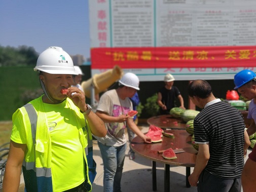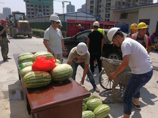 同時(shí)為進(jìn)一步推進(jìn)保障房項(xiàng)目文明施工管理,7月26日上午,公司黨委、工會(huì)、安委會(huì)再次對丈八路保障房項(xiàng)目開展“送清涼·享關(guān)愛”防暑降溫慰問活動(dòng)。將西瓜、綠豆、白糖等防暑降溫用品送達(dá)施工一線的工人手中,并叮囑大家一定要嚴(yán)格執(zhí)行高溫措施,注意勞逸結(jié)合和防暑降溫,切勿麻痹大意造成傷害。長期身處一線職工對公司黨委、工會(huì)和安委會(huì)的關(guān)愛行動(dòng)表示感謝。